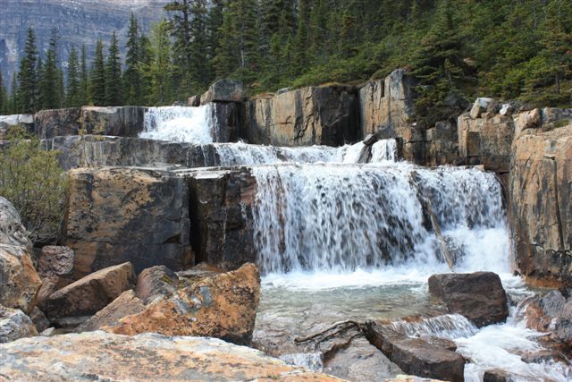 Ribbon Falls is the treat at the end of the Ribbon Creek Trail and a perfect place for lunch - on a rock in the spray if it's a hot day like we had.